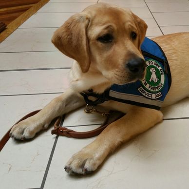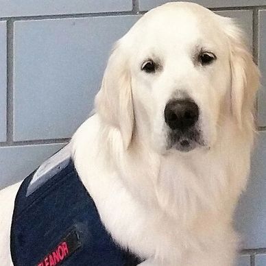 Giving Retriever Eleanor joined our therapeutic team in July 2016. Gentle and filled with love, we just adore her personality and sense of humor! She started her training shortly after birth with early puppy stimulation and controlled exposure to novel sights and sounds in preparation for her Assistance Dog work. Socialization was the most crucial aspect to her early puppy enrichment. Before she reached 7 weeks old, she was exposed to various people including children who helped her to form a secure foundation of trust with humans.