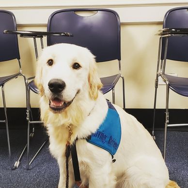 Giving Retriever Hutch is currently available for Canine-Integrated Therapy programming in Westchester County, NY. He lives with and is co-owned by Amanda Plant and her family.